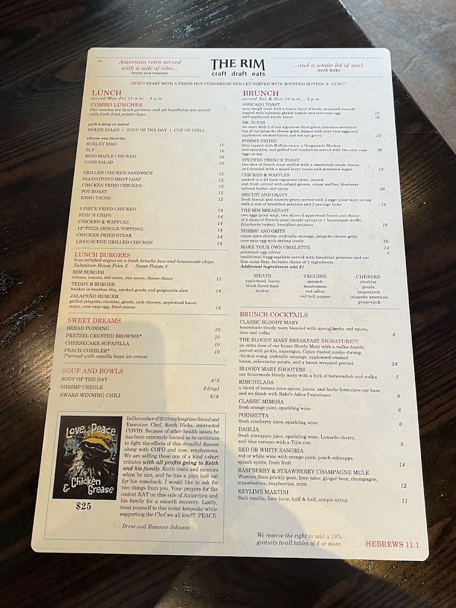 Cajun spice shrimp, andouille sausage, jalapeño cheese grits and over easy egg in a roasted tomato brodo.